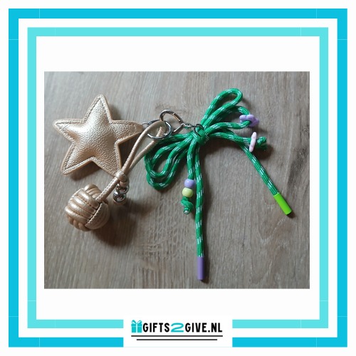 Deze leuke ster bevestig je aan je hengels van je tas.