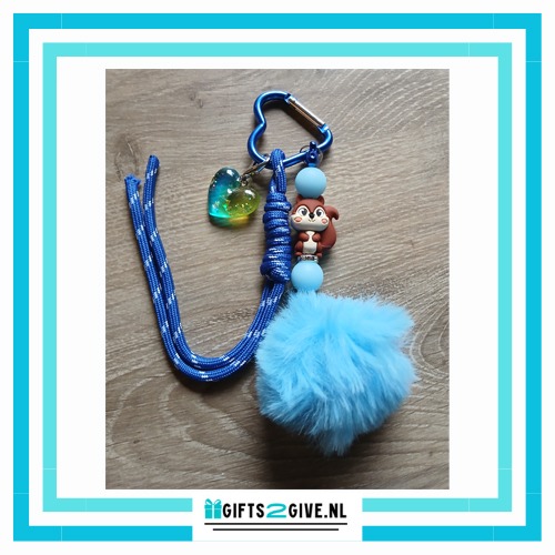 Deze charmante hanger bestaat uit een eekhoorn, gekleurde veter en een lief hartje, allemaal bevestigd aan een stevige sleutelhangerhaak.