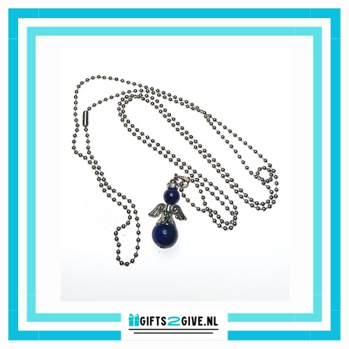 Deze prachtig vervaardigde engel van lapis lazuli kralen is een subtiel en betekenisvol spiritueel sieraad.
