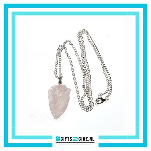 Rozenkwarts in de vorm van een pijlpunt met zilverkleurig hangertje.