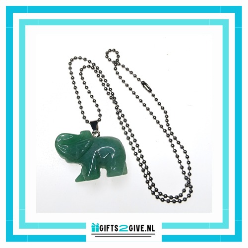 Draag elke dag een vleugje geluk met deze prachtige aventurijn olifant hanger.