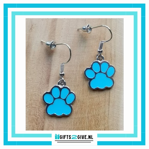 Deze schattige emaille oorbellen met een turkooise hondenpoot zijn perfect voor echte hondenliefhebbers.